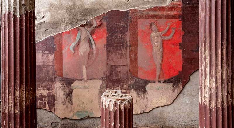 Los arqueólogos de Pompeya han bautizado esta nueva estancia como la 'Casa del Tíaso', es decir, la comitiva que se entregaba a los efectos del dios del vino en orgías y bacanales nocturnas.
