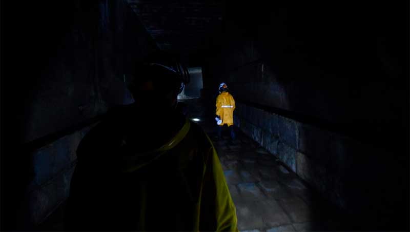 “Aquí abajo no se improvisa”, dice Cristian Cori, supervisor de obras del Gobierno Autónomo Municipal de La Paz, mientras caminamos con linternas encendidas y pasos medidos.