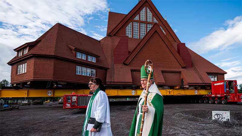 Infobae.- Con un operativo que parece sacado de una película y que paralizó a toda una ciudad, la iglesia luterana Kiruna Kyrka, inaugurada en 1912, comenzó este martes un viaje lento pero histórico en el norte de Suecia.