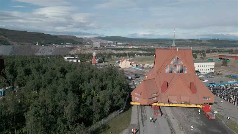 El templo de madera, de 672 toneladas, será desplazado cinco kilómetros a lo largo de dos días para evitar ser consumido por la expansión de la mina de hierro subterránea más grande de Europa.