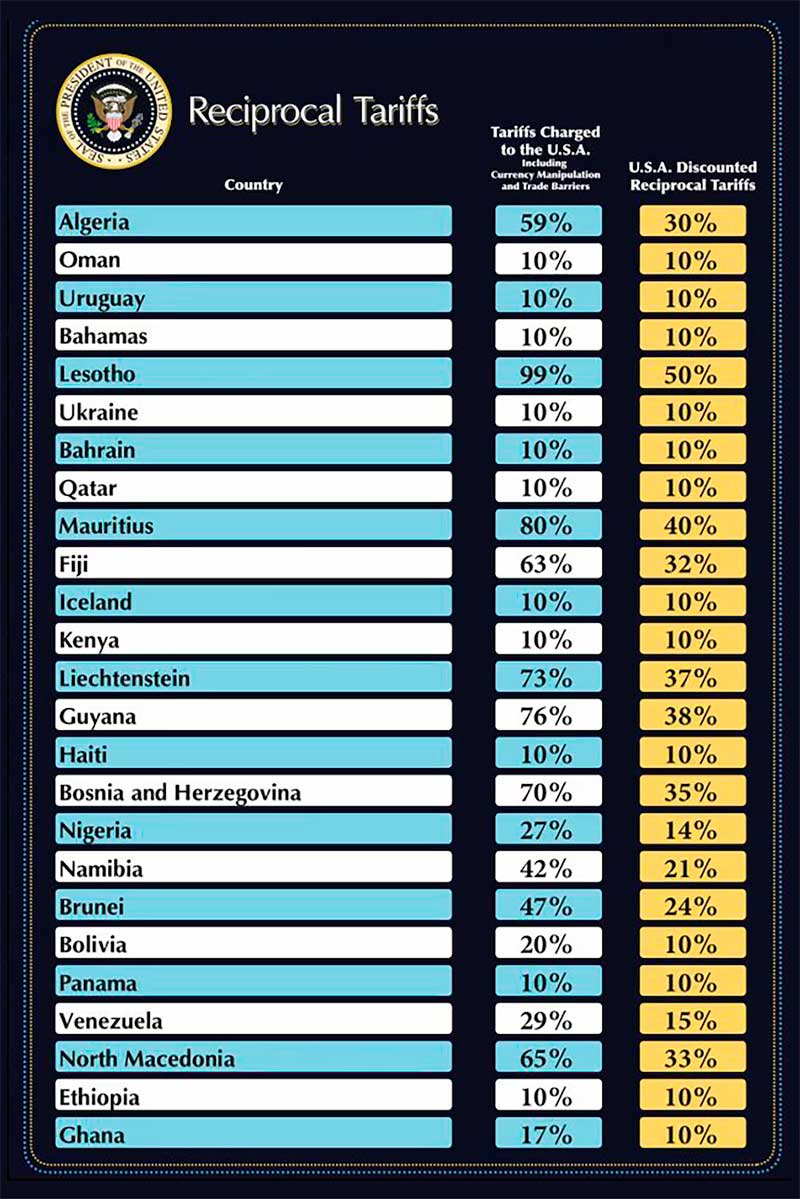 Trump ordenó, sin embargo, que ciertas naciones solo sean alcanzadas por la cifra mínima del 10 por ciento, por lo que la ecuación acaba en igualdad de condiciones para todas las partes.