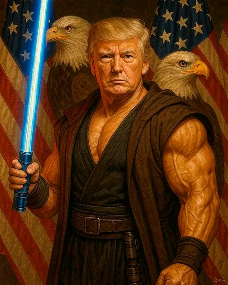La Casa Blanca publicó este domingo en sus redes sociales una foto del presidente Donald Trump al estilo de Star Wars generada por IA.