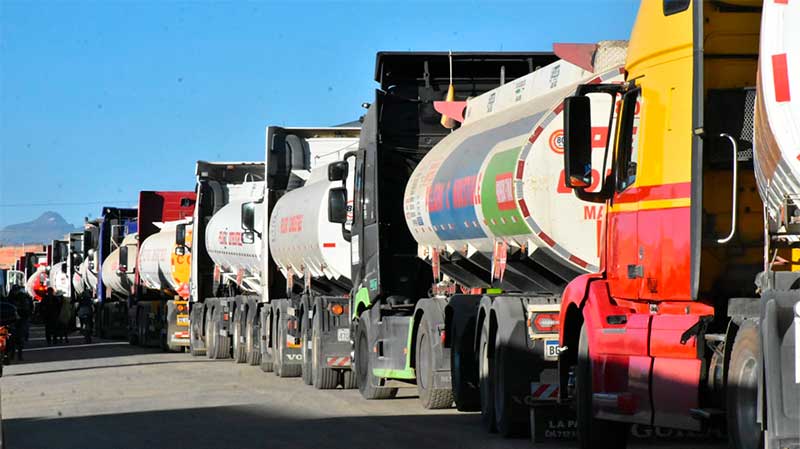 Un convoy de 31 cisternas con combustible de importación logró superar un punto de bloqueo en el camino a Laja, carretera a Desaguadero y Perú, y dirigirse a la planta de Senkata, en la ciudad de El Alto, para su posterior distribuir en el departamento de La Paz.