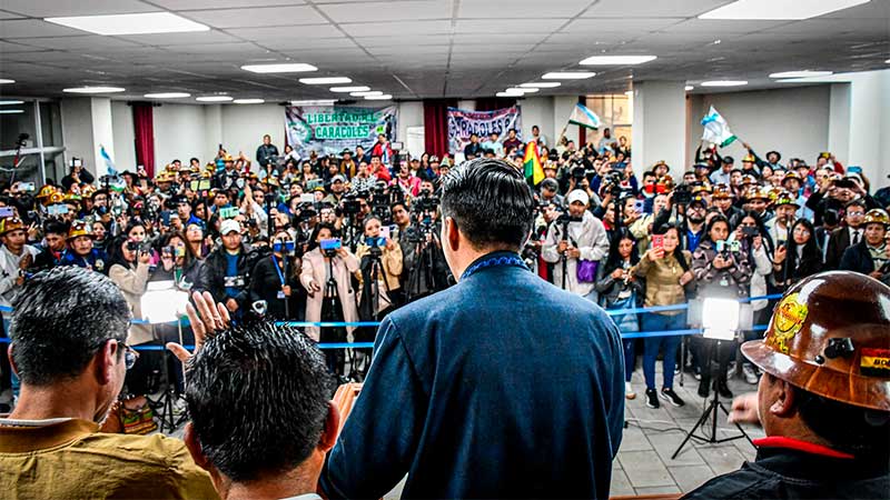 Acompañado de Félix Patzi y sectores mineros, Andrónico se refirió primero al MAS y Luis Arce. Dijo que “uno de los principales obstáculos del presidente Lucho Arce no es Evo Morales, sino su propio gobierno. Su ineficiencia, su autoritarismo y la corrupción que lo carcome”, dijo Rodríguez en un prolongado.