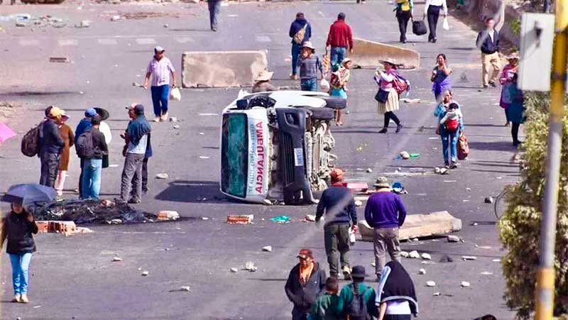 Hasta el momento tres ambulancias fueron dañadas, la primera en Oruro, otra el viernes y la tercera al amanecer de este sábado cerca del río Khora (Cochabamba) que aún no se la puede recuperar porque prácticamente está secuestrada.