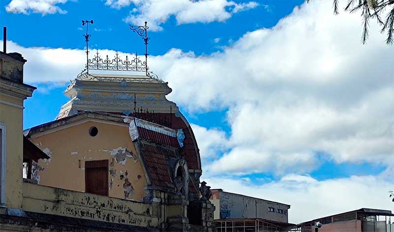 RT.- En el Centro Histórico de Quito, en la esquina de las calles Luis Vargas Torres y Francisco de Caldas, se encuentra una mansión, en cuyo techo reposa un féretro. Aunque no es algo nuevo, esto ha comenzado a llamar la atención de los quiteños.