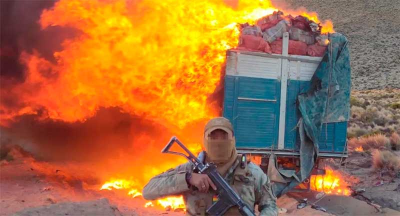 Explicó que el personal militar está facultado legalmente a destruir mercadería de contrabando y medios de transporte retenidos en zonas fronterizas, especialmente cuando existe un “riesgo inminente” de que los infractores recuperen camiones o cargamentos a través de ataques armados o movilización de comunarios afines.