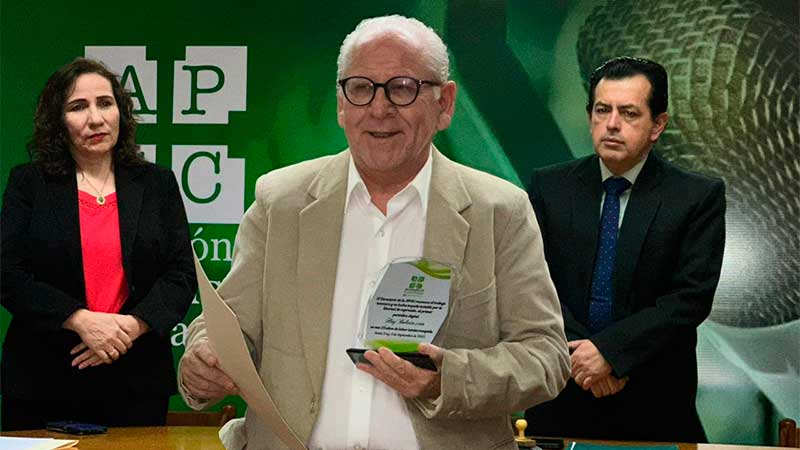 El presidente de la Asociación, Marco Curi, fue el encargado de entregar al director y creador de Hoybolivia, una plaqueta de reconocimiento por estos 25 años al servicio de la comunidad.