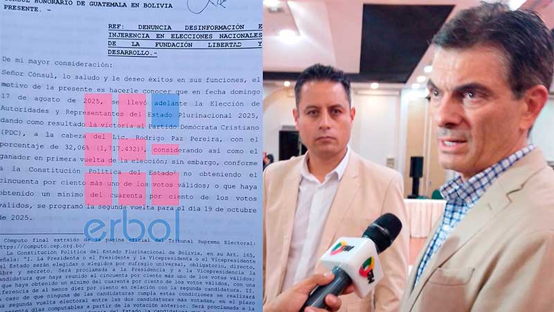 Erbol.- El presidente del Partido Demócrata Cristiano (PDC), Roberto Castro, informó este lunes que se ha presentado dos denuncias referidas al proceso electoral, una por “guerra sucia” en las redes sociales y, la segunda, por la presunta “injerencia” de la Fundación Libertad y Desarrollo, cuyo presidente es el guatemalteco Dionisio Gutiérrez.