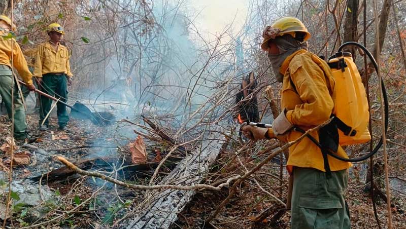 En el Parque Nacional Noel Kempff Mercado, 49 bomberos están desplazados para la mitigación del fuego, en tanto se organiza el traslado de guardaparques y militares para el combate directo del fuego activo.