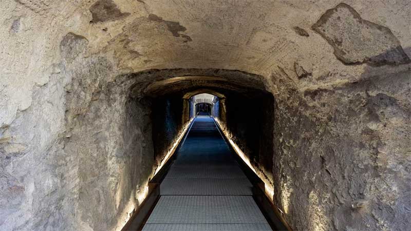 La restauración reciente ha devuelto el esplendor a sus superficies antiguas, donde aún se aprecian restos de mármol y las huellas de las grapas metálicas que sostenían las losas. El pasaje, ahora parcialmente iluminado y ventilado, permite a los visitantes experimentar un espacio que, durante la época imperial, estaba reservado exclusivamente para el uso de los emperadores.
