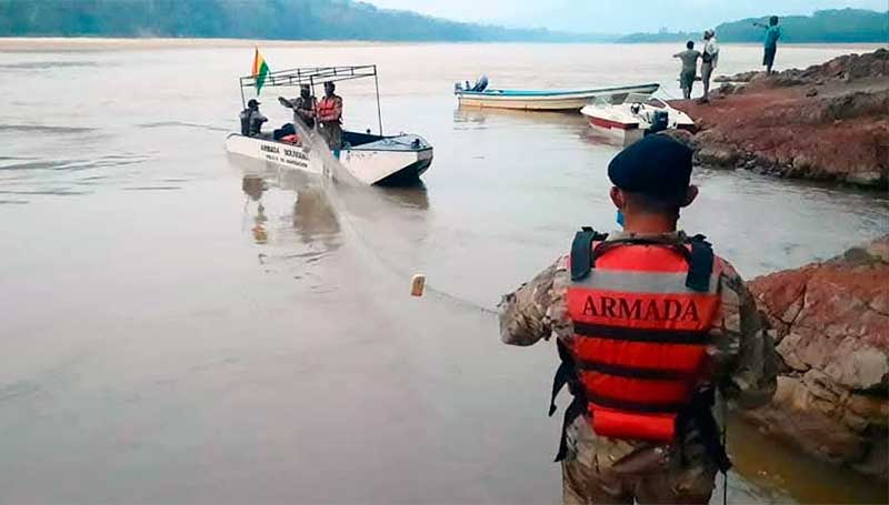 Los militares se desplazaron sobre el río Mamoré, en el departamento del Beni, para realizar los controles.