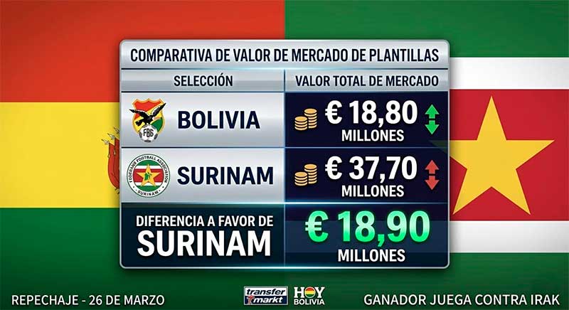 El fútbol se define en la cancha, pero las finanzas marcan la previa de este crucial 26 de marzo. La Selección Boliviana enfrenta a Surinam en un repechaje a todo o nada para avanzar y medirse contra Irak el próximo 31 de marzo.