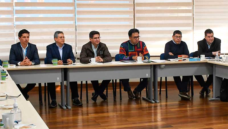 Del encuentro, presidido por Montenegro, participaron el presidente de la Confederación de Empresarios Privados de Bolivia, Giovanni Ortuño, y los representantes de la Cámara Nacional de Exportadores de Bolivia (Caneb) y del sector minero exportador.