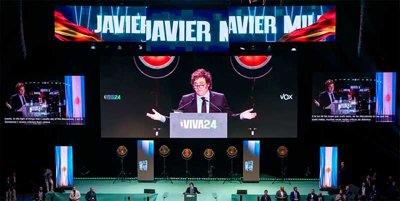Para Vox, el gran ejemplo era hasta ahora el partido húngaro Fidez, de Viktor Orbán, quien intervino a través de un video. Pero, el domingo, muchos partidarios de Vox encontraron en Milei un nuevo ídolo".