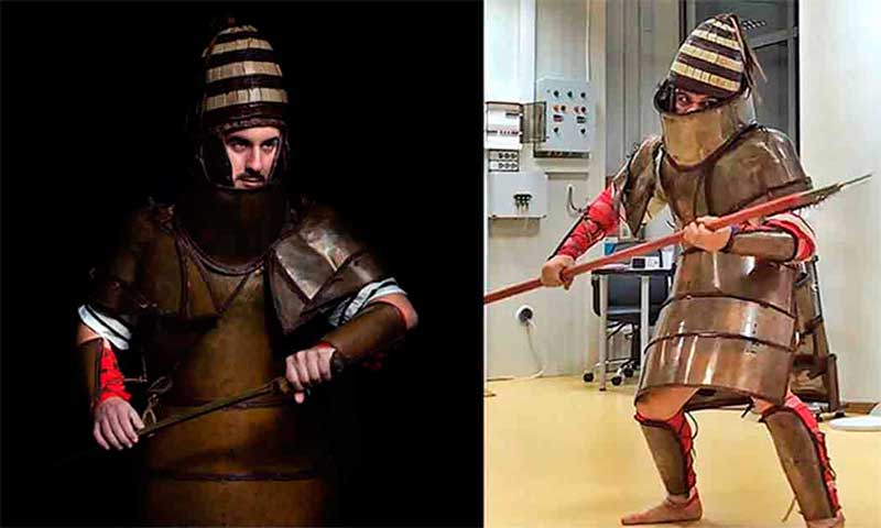 Andreas Flouris, al frente de un equipo de la Universidad de Tesalia en Grecia, decidió poner a prueba su utilidad recreando meticulosamente el atuendo, que incluía un casco adornado con un colmillo de jabalí y placas de bronce, según un comunicado de la revista PLOS One.