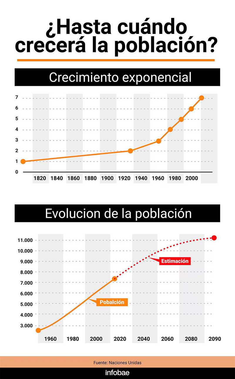 “El pico de la humanidad”, como lo llama el experto Parag Khanna, se produciría sobre finales de la segunda mitad del siglo XXI. La ONU recientemente rebajó sus proyecciones de población, con un máximo de 10.400 millones en la década de 2080. El Instituto de Medición y Evaluación de la Salud (IHME), por su parte, estima un máximo de 9.700 millones en 2064.