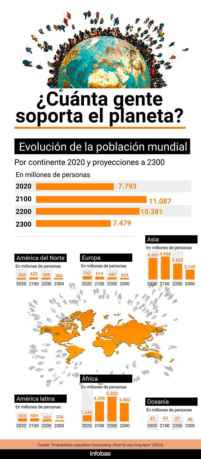 A partir de allí, cree, iniciará un descenso que llevará en el año 2200 a 10.300 millones de habitantes y mucho menos cien años más tarde, cuando se volvería a una población similar en tamaño a la actual.