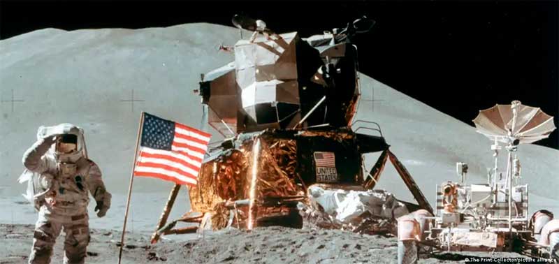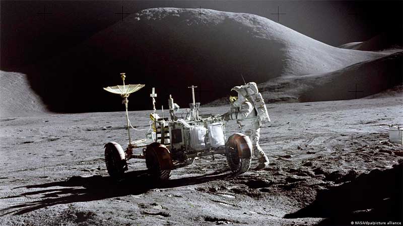 La publicación usa una foto auténtica del astronauta del Apolo 15, James Irwin, en la Luna junto al primer vehículo lunar el 1 de agosto de 1971.