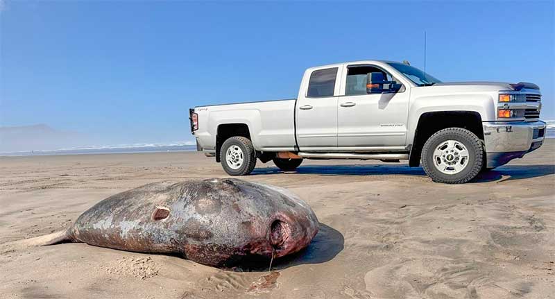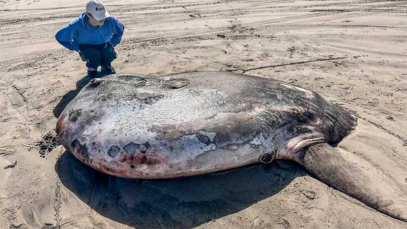 Un pez luna embaucador de 2,2 metros fue encontrado varado en la playa de Gearhart en Oregón la semana pasada, recoge Fox News.