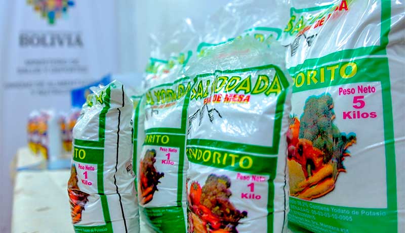 En el departamento de La Paz, las empresas certificadas son: La Universal, Perla Andina y Ketal. En Cochabamba: Hipermaxi, Salcita, El Salerito y Salserito, y en Oruro: Universo, Blanquita, Condorito, Nico sal, Pura sal y Niño Salvador.