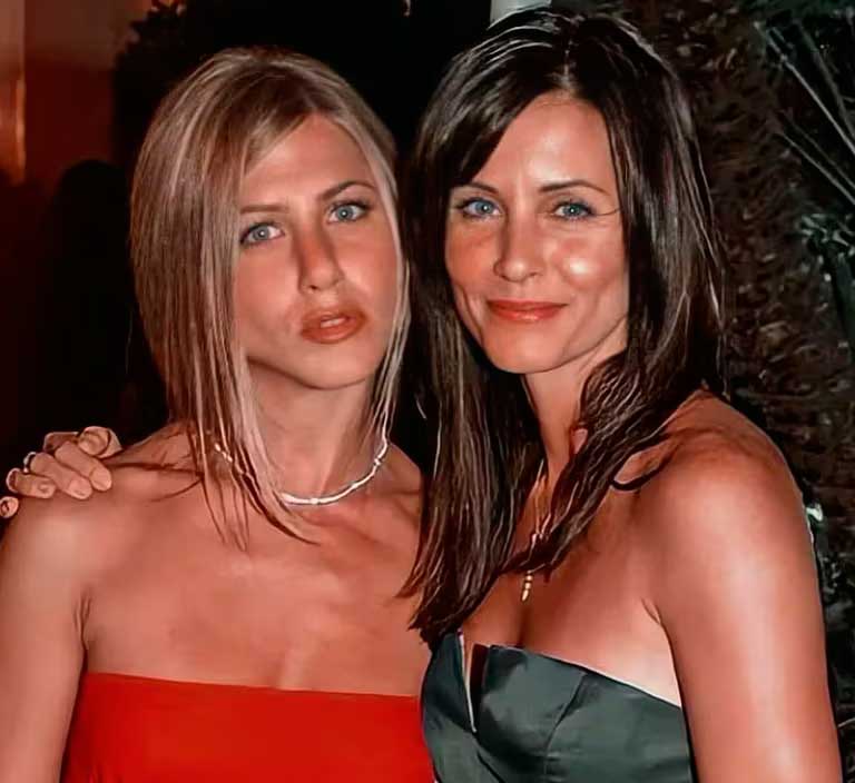 Matthew Perry y Courteney Cox siempre serán reconocidos como Chandler y Monica, los eternos novios de la serie Friends. Los personajes interpretados por Matthew le propusieron matrimonio a los encarnados por Cox dos veces: primero en Friends (1994) y posteriormente en Cougar Town (2009). Pero, ¿fue la relación fuera de la pantalla entre Perry y Cox puramente platónica? En la vida real los dos eran amigos antes de la prematura muerte de Perry y no ha habido indicios de que su relación romántica se extendiera fuera de la pantalla. Como se ha dicho Courteney había conocido y se había enamorado de David Arquette durante la producción de Scream en 1996. Se casaron en 1999 y permanecieron juntos durante toda la serie de Friends, hasta el divorcio en 2013.