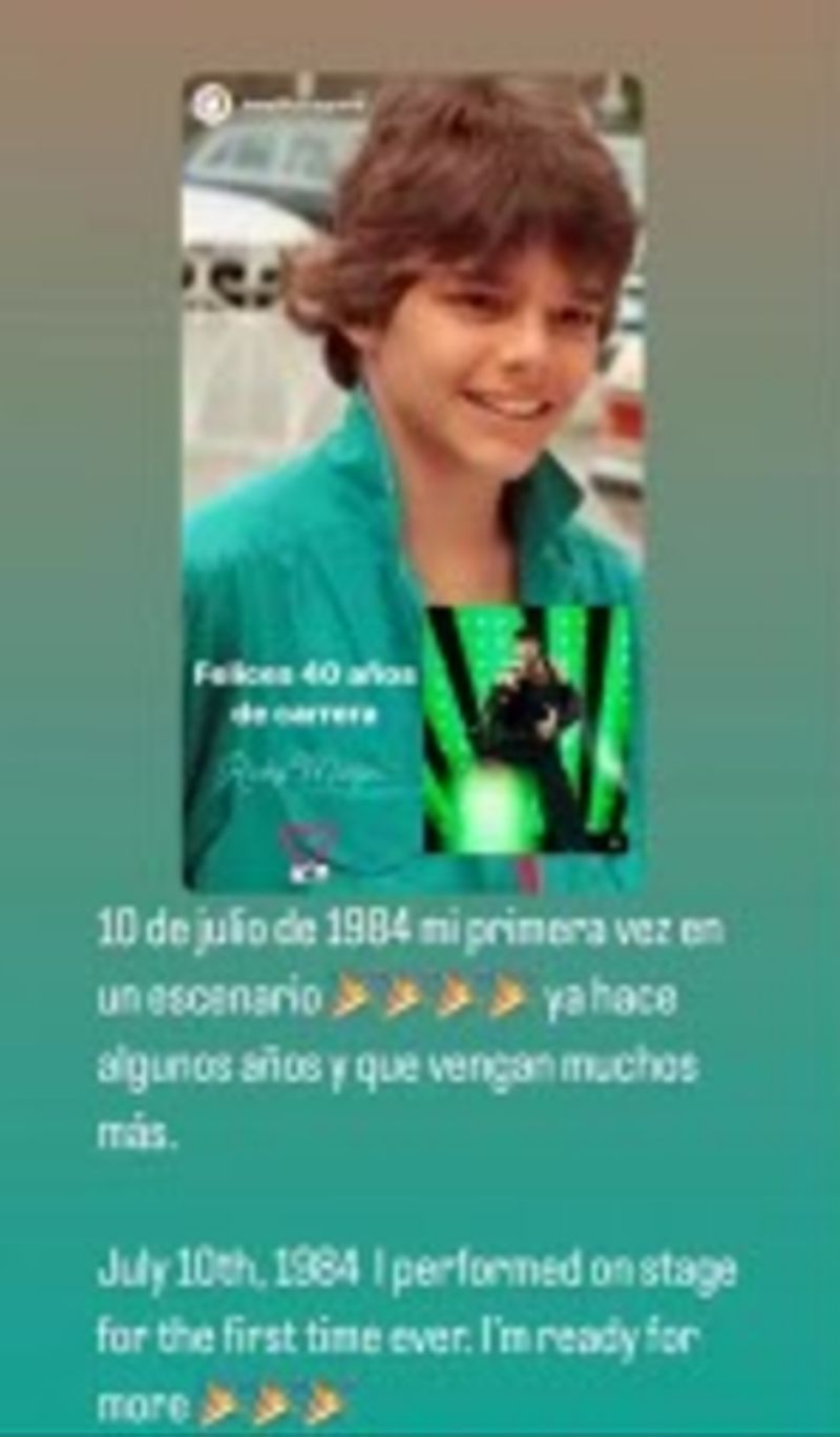 Junto a la imagen, el intérprete de Tu recuerdo escribió en Instagram: "10 de julio de 1984, mi primera vez en un escenario. Ya hace algunos años y que vengan muchos más".