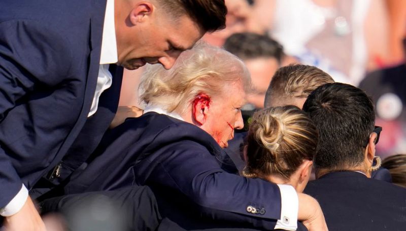 A continuación, el expresidente se puso en pie y levantó el puño afirmando que estaba bien, sin embargo, se alcanzaba a ver sangre saliendo de su oreja. Su comitiva abandonó rápidamente el recinto. La Policía comenzó a desalojar el lugar poco después de que Trump saliera del escenario.