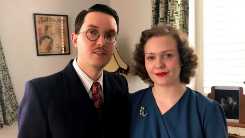 Liberty Avery y Greg Kirby se vistieron con ropa de los años 40 en su salón de estilo vintage.