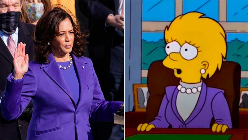 Asimismo, una escena del capítulo muestra a Lisa en el Despacho Oval de la Casa Blanca con un traje violeta y un collar de perlas blancas, un atuendo muy similar al que Harris vistió en su toma de posesión como vicepresidenta en 2021.