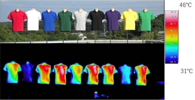 Experimentos recientes en condiciones de sol intenso y 30°C muestran que las camisas blancas mantienen la temperatura superficial igual a la del ambiente (30°C), mientras que las camisas negras y verde oscuro superan los 50°C. Elegir colores claros ayuda a mantener la ropa más fresca y evita el golpe de calor.