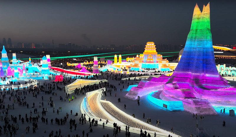 Los números hablan por sí solos. Sus 19.000 metros cuadrados de superficie albergan más de 1.000 esculturas de hielo, una noria de 120 metros de altura, y un tobogán de más de 500 metros de longitud. Sus actividades van desde el patinaje a los toboganes excavados en el hielo (con o sin vehículo para deslizarse) como baños en agua helada para los más valientes.