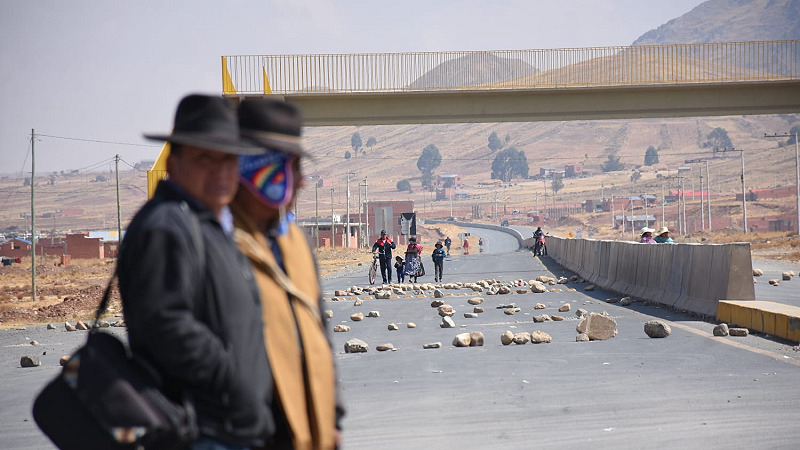 Este lunes, una facción de la Federación Tupac Katari inició un bloqueo de carreteras en pedido de la renuncia del presidente Luis Arce y del vicepresidente David Choquehuanca.