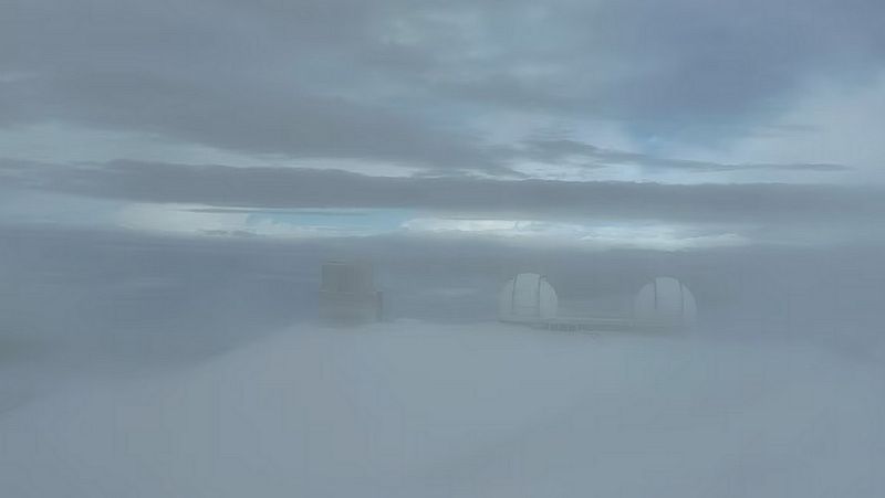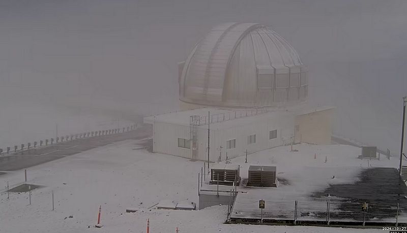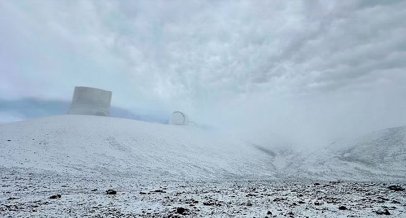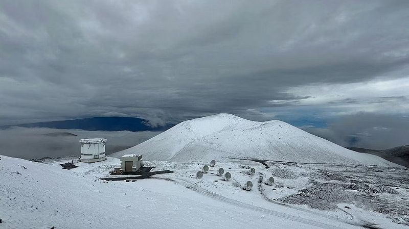 Las cámaras web montadas en el Telescopio Canadá-Francia-Hawaii mostraron el suelo cubierto de blanco poco después del amanecer del lunes. Dos días después, las cámaras mostraron que la nieve había desaparecido.