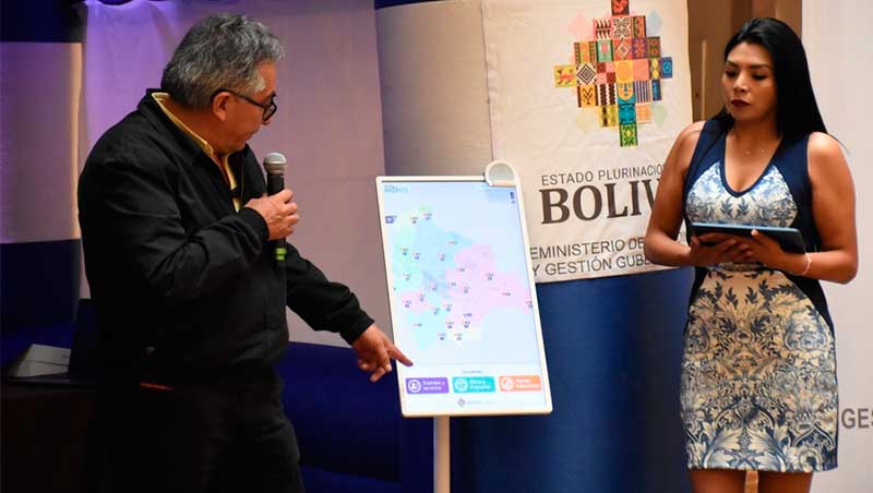 “Aquí, en InfoMóvil, se podrá buscar todo lo que quiera saber sobre la gestión gubernamental, en cuanto a trámites, obras y proyectos y plantas industriales. Se busca el departamento y la provincia, inclusive, y si busca trámites le saldrá toda la información”, explicó el viceministro de Coordinación y Gestión Gubernamental, Gustavo Torrico, en el lanzamiento de la plataforma digital en un acto público.