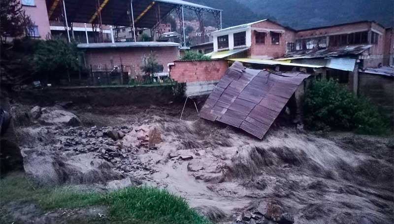 Tras registrarse lluvias intensas, en la cabecera del valle Inquisivi, la madrugada del viernes, los ríos Kuyuna y Quime, que cruzan parte del centro poblado del municipio, se desbordaron y a su paso destruyeron la plataforma de la carretera y afectaron viviendas de la región.