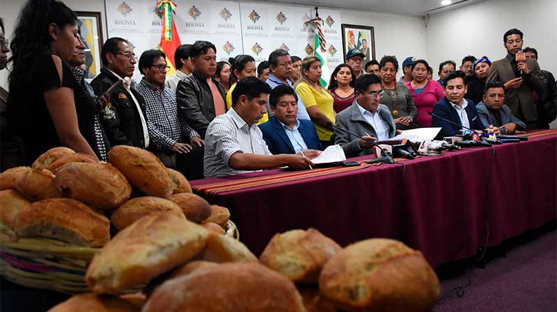 El Gobierno nacional firmó este martes un acuerdo con la Confederación de Panificadores de Bolivia para dotarles de insumos como harina, azúcar, manteca y levadura, de forma subvencionada, para mantener el precio del “pan de batalla” a Bs 0,50 durante este año.
