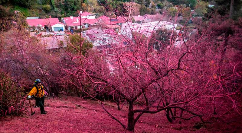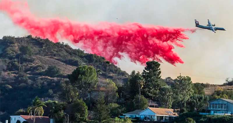 DW.- Los retardantes de llama se usan para combatir grandes incendios desde el aire: aviones y helicópteros lanzan un polvo rosado que extingue los fuegos o ralentiza su propagación y, de paso, cubre casas, jardines y calles con este brillante color.