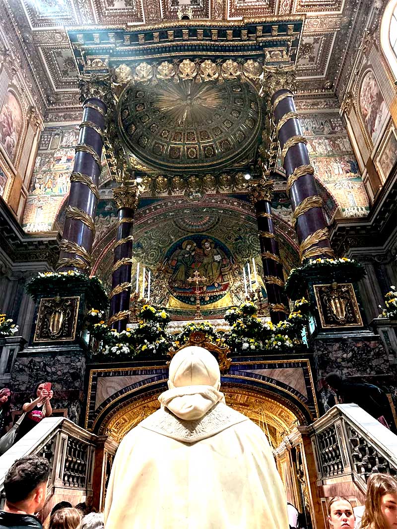 Desde lo alto del monte Esquilino, la basílica de Santa María la Mayor domina la ciudad de Roma desde hace 16 siglos. Desde su construcción se ha convertido en el templo de culto por excelencia a la Virgen María y en uno de los más importantes para la comunidad católica. Además, en la Navidad de 1538 celebró allí su primera misa, San Ignacio de Loyola, fundador de los jesuitas, la orden religiosa de la que procede el Papa Francisco. De hecho, es el primer papa jesuita de la historia y fue ordenado sacerdote de la Compañía de Jesús el 13 de diciembre de 1969.