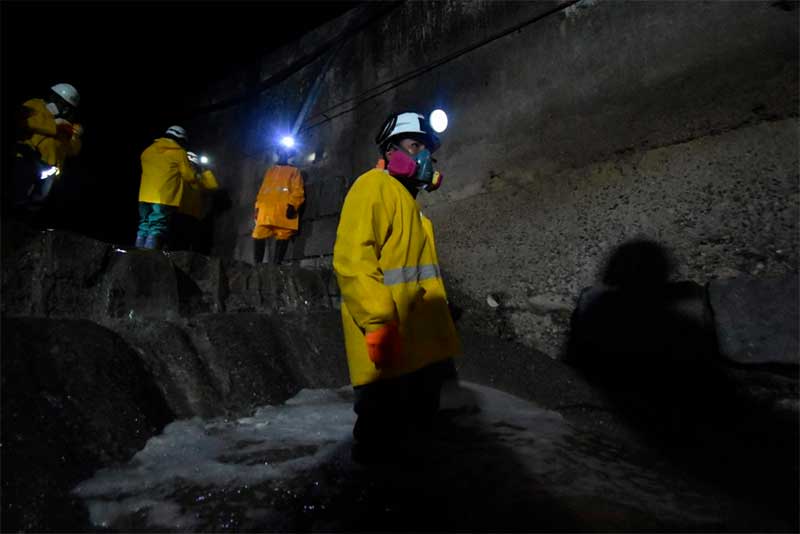 “Primero se explica todo: riesgos, medidas, qué hacer si… Luego el equipo: casco con linterna y mentonera, máscara respiratoria, guantes, botas, traje impermeable. Todo el cuerpo tiene que estar cubierto. Luego se mide la atmósfera: monóxido, sulfuros, gases inflamables, oxígeno. Si algo falla, no se entra”, explica.