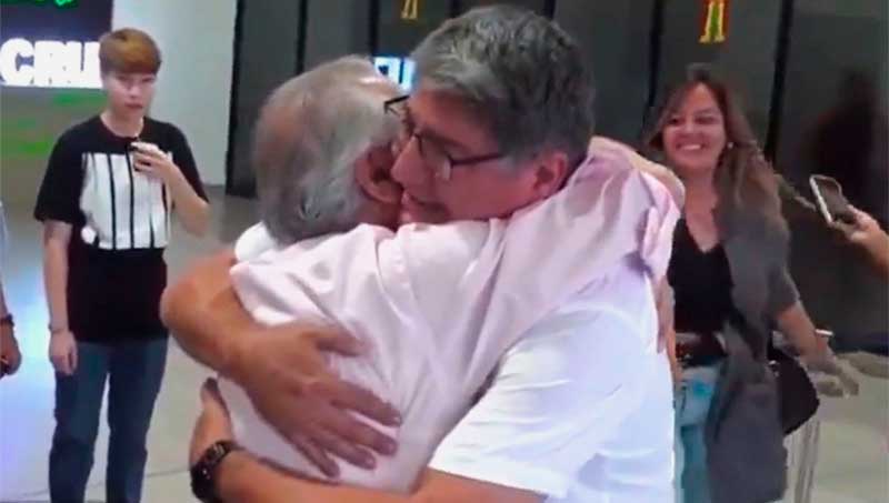 A su llegada al aeropuerto de Viru Viru, en Santa Cruz, fue recibido por su familia y allegados, protagonizando un emotivo reencuentro con su padre, Jerjes Justiniano Talavera, exembajador de Bolivia en Brasil durante la gestión de Evo Morales.